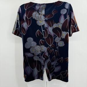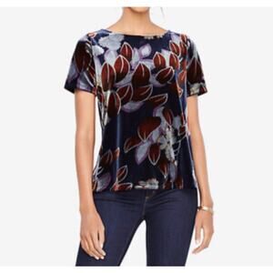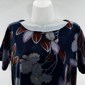 Ann Taylor Botanical Velvet Tee Top Sz S Dark Blue Teal Floral Quiet Luxury Fall