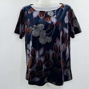Ann Taylor Botanical Velvet Tee Top Sz Small Dark Blue Teal Floral Quiet Luxury Fall