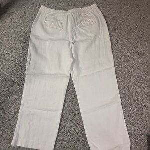 Classic and effortless, these Ann Taylor pants are crafted from crisp, breathable 100% linen in a bright white shade. Perfect for summer, vacation, or chic everyday wear, they feature a relaxed straight-leg fit, drawstring waist, and both front and back pockets.
