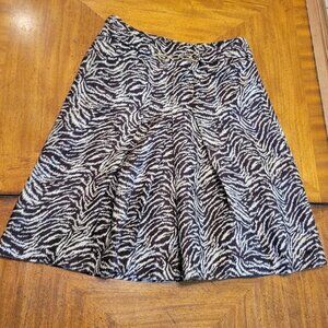 Ann Taylor Brown & Cream Wool Blend High Waist Pleated Skirt
