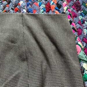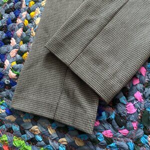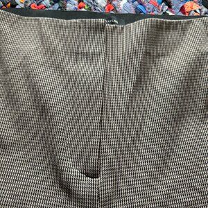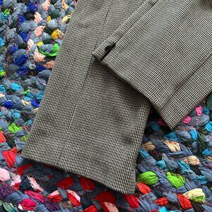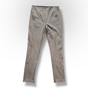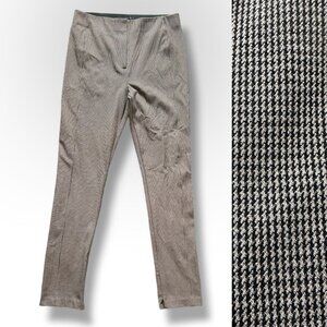 Brown/tan houndstooth flat front pants. Slim silhouette, high waist trousers with a zipper accent at hems to open legs to more of a flare silhouette. Has stretch. Pre-owned in excellent condition, no holes or stains.