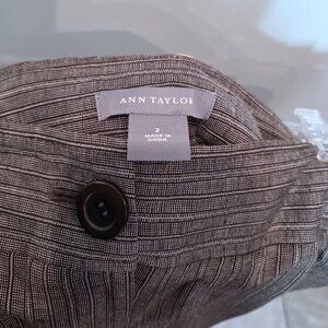 Ann Taylor Brown Linen Blend Striped Cropped Trouser Pants Size 2