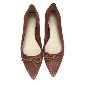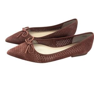 Ann Taylor Brown Suede Pointy Toe Ballet Flats Bow on Front Womens Size 9.5