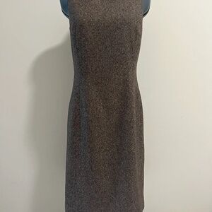 Ann Taylor Brown Tweed Wool Work Sheath Dress Size 2