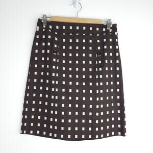 Ann Taylor Brown White Square Geometric Pencil Mini Skirt Size 2 Woven