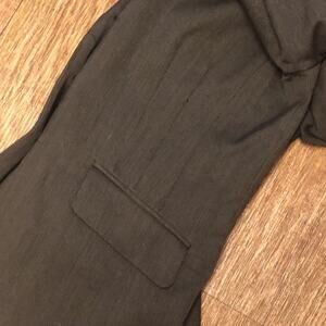 • Other information: Dark brown and tan tweed suit jacket blazer. Three buttons present down the front of the jacket. Two fake pockets. Pretty stitching design above the fake pockets. Lined. Collar, side and back slits, and shoulder pads present.