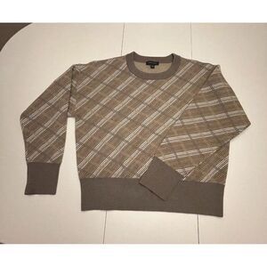 Ann Taylor Brown/Taupe Long Sleeves Jacquard Striped Plaid Knit Sweater Size XXL