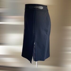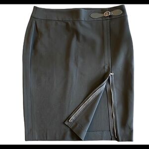 Ann Taylor Buckle Detail Zipper Slit Pencil Skirt Black 12P