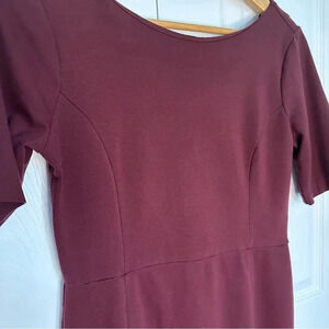 Ann Taylor Burgandy Half Sleeve Back Slit V-back Midi Dress Womens Size 4