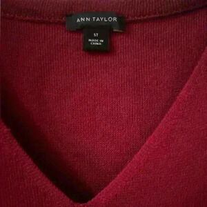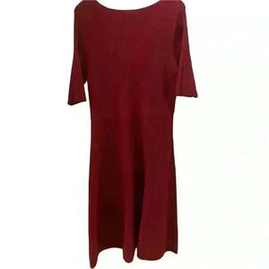 Ann Taylor Women's Burgundy V-Neck Fit and Flare Knee Length Dress Small Tall