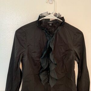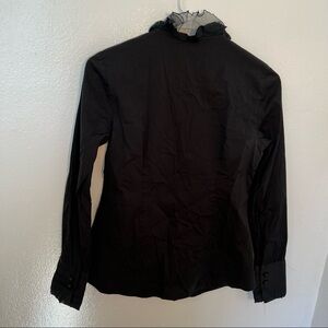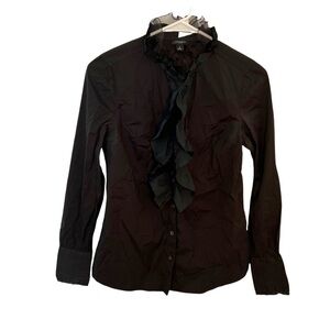 Ann Taylor Button Down Blouse Black Ruffle