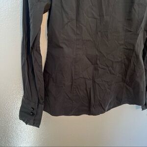 Great condition, minor wear. Ann Taylor. Button down blouse. Ruffles down button placket. Long sleeve. Black. Size 0. Missing material tag. Pit to pit laying flat 16.5” Shoulder to hem 23” Sleeve (pit to hem) 18”. All measurements are approximate and taken laying flat. Smoke free home. No trades, offers welcome.