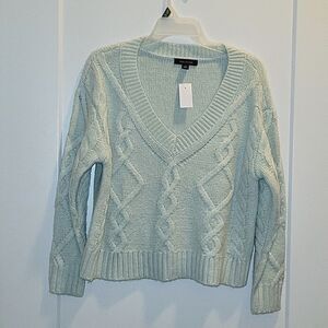 Ann Taylor Cable Knit Cropped V neck Sweater. Light Green XXS OVERSIZED runs big