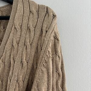 Ann Taylor Cable Knit Silk Blend Wrap V Neck Sweater in Metallic Gold Size M