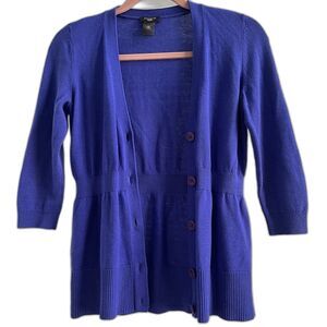 Ann Taylor Cardigan Small 5 Button V-Neck Cobalt Blue Sweater