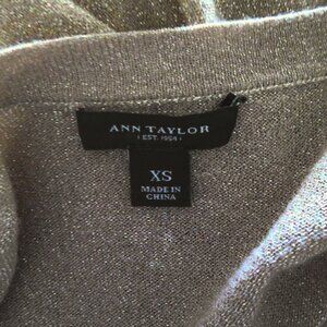 Ann Taylor Cardigan Sweater Champagne Gold Sparkle Pockets MOP Buttons EUC Sz XS