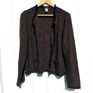 Ann Taylor Cardigan Sweater Orange Pink Black Open Fringe Knit Large
