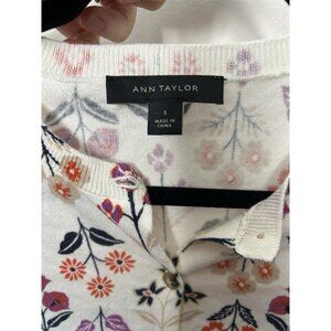 Ann Taylor Cardigan Sweater Womens Cream Floral Long Sleeve Button Front Small