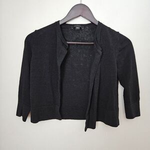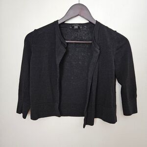 Ann Taylor Cardigan Sweater Short Business Casual Neutral Black Knit Classic