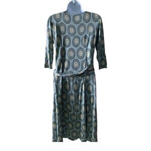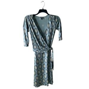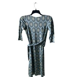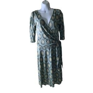 Ann Taylor Casual Wrap Dress Women 4 Sleeve Midi V-Neck Stretch Bullseye Pattern