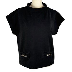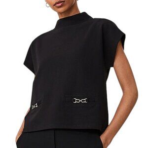 Polished, chic, and timeless — this Ann Taylor mock neck top combines structured elegance with modern details. The gold chain accents add a sophisticated equestrian-inspired touch, while the soft stretch knit ensures comfort and versatility. Perfect with trousers or denim, it transitions effortlessly from office to evening.
