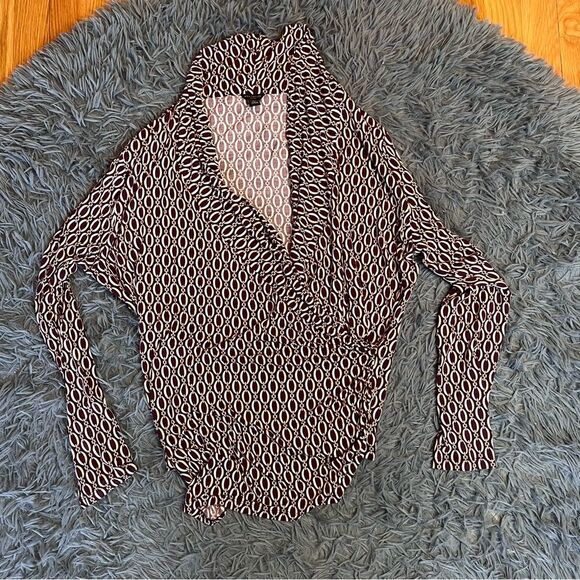 Ann Taylor Chain Print Faux Wrap Slinky Blouse Top Size XL Petite
