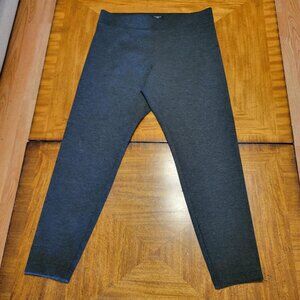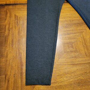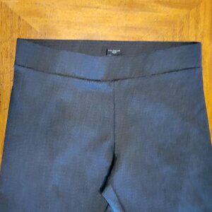 Color is a charcoal gray. Fabric is heavy and has stretch Lean leg; slightly cropped to fit at ankle; quality stretch fabric; wide elastic banding at waist; pull on - slim fit with no pockets. Looks great with heels.