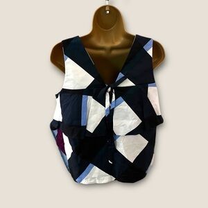 Ann Taylor Checkered Linen Cotton Sleeveless Top Black Combo SP NWOT