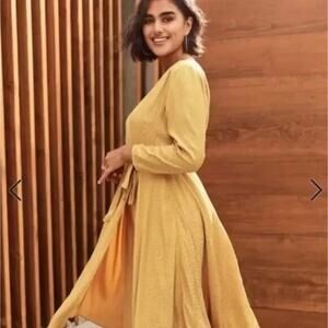 This dress combines sophistication and style with a chic cheetah print in a striking yellow hue. Crafted from a luxuriously soft, silk-like jacquard fabric, this dress offers a lightweight, lined design that drapes beautifully on the body. The flattering faux-wrap V-neck and adjustable belt accentuate the waist, creating an elegant, feminine silhouette.