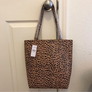 Handles drop 9.5”. Bag length is 13” tall, bottom 4” deep, width at the top is 14”wide.