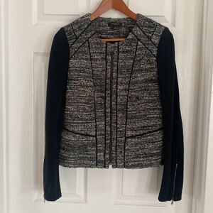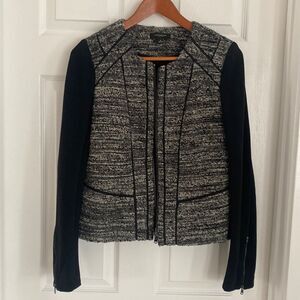Ann Taylor Chic Black and Gray Wool Blend Tweed Jacket Bralzer Career Coat Women’s Size 6