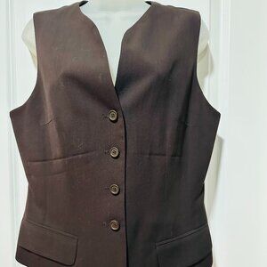 Ann Taylor Chocolate Brown Button Front Lined Vest, Size 10