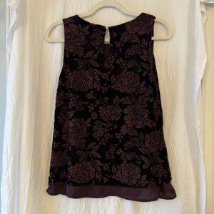 Ann Taylor Factory Womens Burgundy/Plum Floral Embossed Velvet Sleeveless Top Size XS Lined
