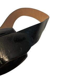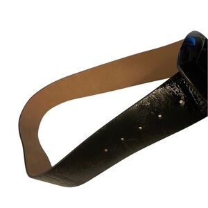 Ann Taylor Chunky Patent Black Belt with Tan Interior Statement Chic