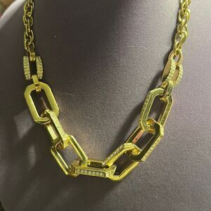 Ann Taylor Chunky Link Necklace Goldtone with Crystals
