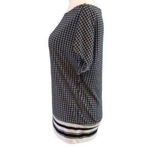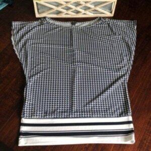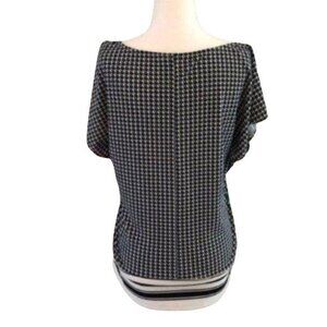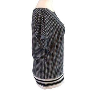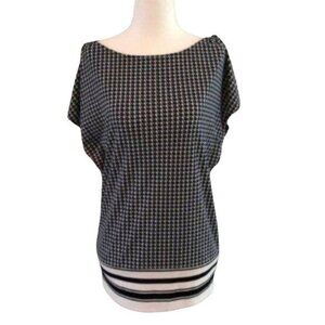Ann Taylor Circle Print Dolman Split-Sleeve Top Black White Striped Hem Size S