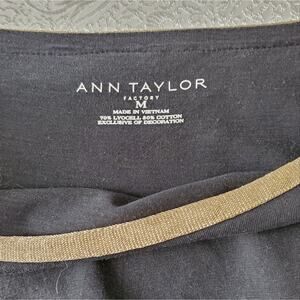 Ann Taylor Classic Black T Shirt Women's Size M Gold Trim Cap Sleeve Minimalist