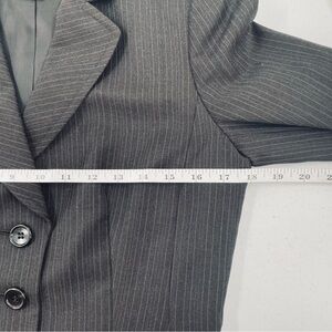 Ann Taylor Classic Charcoal Pinstripe Pocketed Button Front Cuff Blazer Office