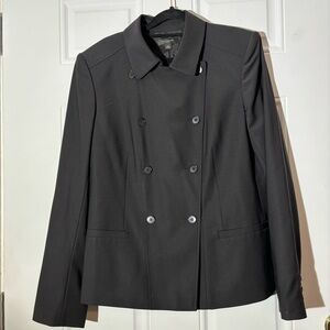 Ann Taylor Classic Double Breasted Black Virgin Wool Blazer, Size 14