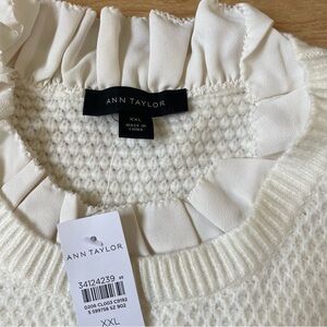 Ann Taylor Classic Ivory/White Knitted Sweater with Ruffled Collar XXL NWT!