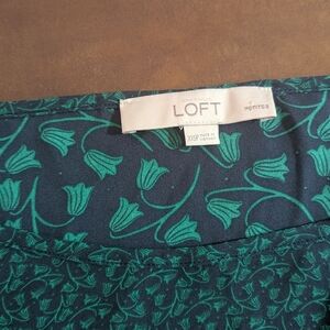 Ann Taylor LOFT Floral Blouse in Navy Blue and Teal Green Women’s Size XXSmall. This is EUC, with Long Sleeves Button Cuffs featuring a Boat Neck, Mixed Floral Print, Piping Trim and Flowy Polyester Crepe BOHO Vintagey Vibes.