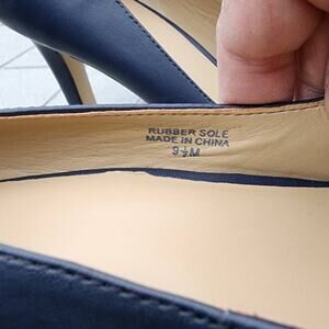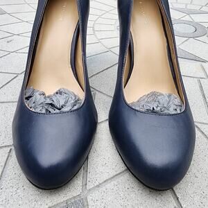 EUC: Classic, blue leather pumps / heels with round toe / slip on / wrapped slim heel by Ann Taylor. In excellent preowned intact condition with minimal wear. **Disclosure: there are tread marks. Please see pictures.