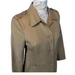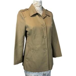 Ann Taylor Classic Short Trench Khaki Coat Epaulets, pleated back size 10 petite