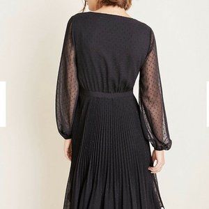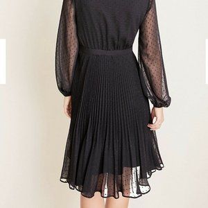 Breeze through the season in this softly swirled dress, refined with clip dots, sheer sleeves and a prettily pleated skirt. V-neck. Long sleeves with elasticized cuffs. Button front placket. Lined body.Available in: BlackFABRIC & CARE• 100% Polyester • Machine Washable • Imported