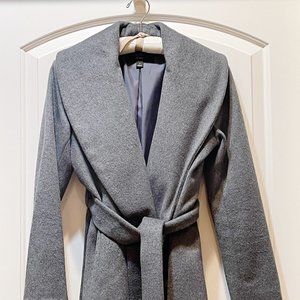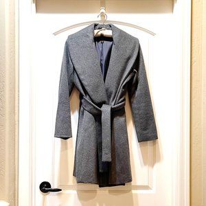 Ann Taylor Coat Factory Petite Small PS Gray Wool Blend Shawl Wrap Belted Coat