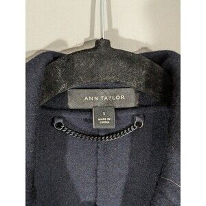 Ann Taylor Coat Women Size Small Navy Blue Wool Blend Contrast Stitch Classic