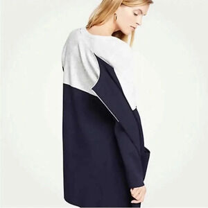 Ann Taylor Coatigan Colorblock Navy White Speckled Thick Knit Cardigan Small
