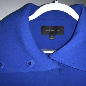Ann Taylor Cobalt Blue covered snap front pea coat Sz XS tulip hem pockets lined