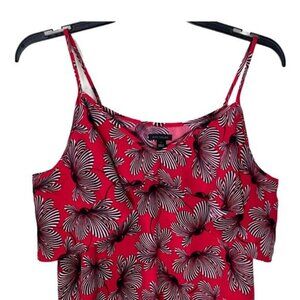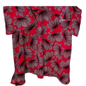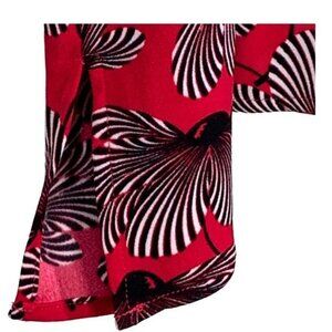 Vibrant red blouse with bold black & pink floral print. Cold-shoulder design with soft ruffle detail. Lightweight and breezy—great for date night or the office under a blazer. Excellent condition.