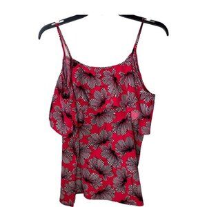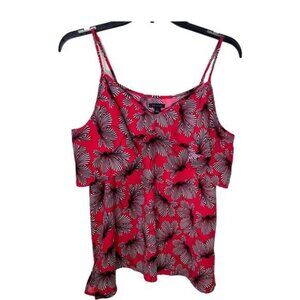 Ann Taylor Cold Shoulder Floral Blouse Small Red Black Pink Ruffle Trim